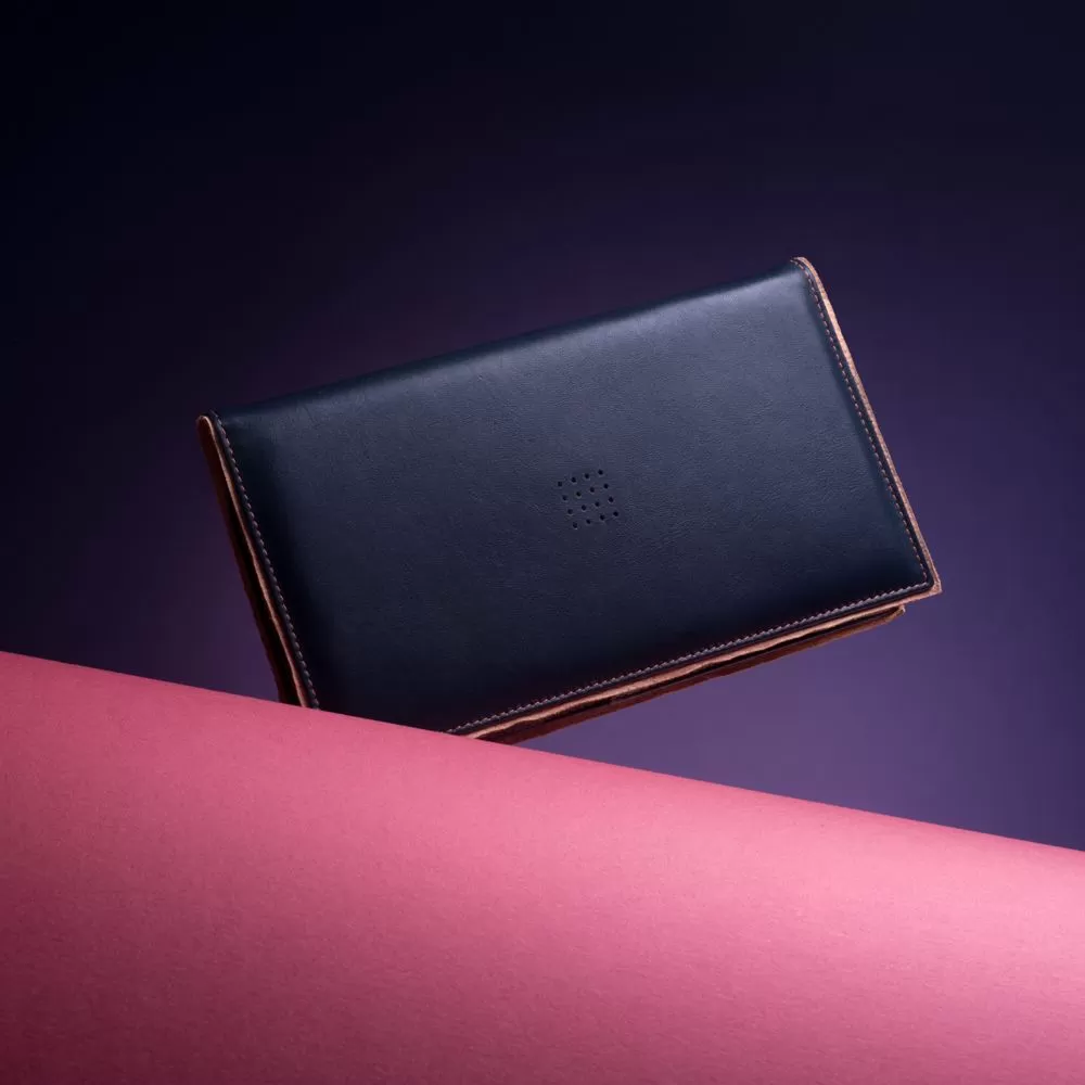 Изделия линейки Palermo изготовлены из гладкой кожи глубокого синего цвета с контрастной отделкой из замши. Оформленные в едином стиле, они легко собираются в подарочные наборы.