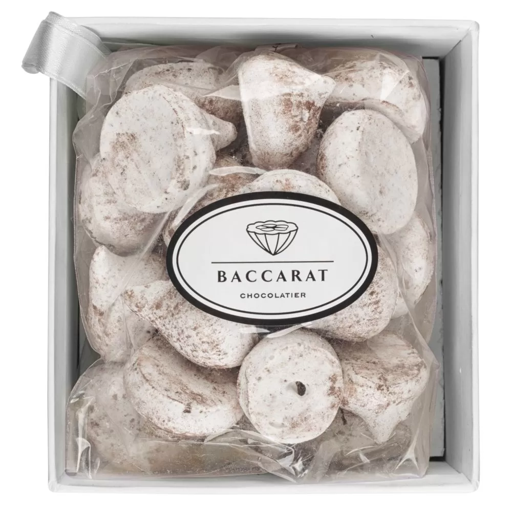 - меренги «Шоколадные капли» фирмы Baccarat в индивидуальном пакете с ленточкой, вес 70 г;