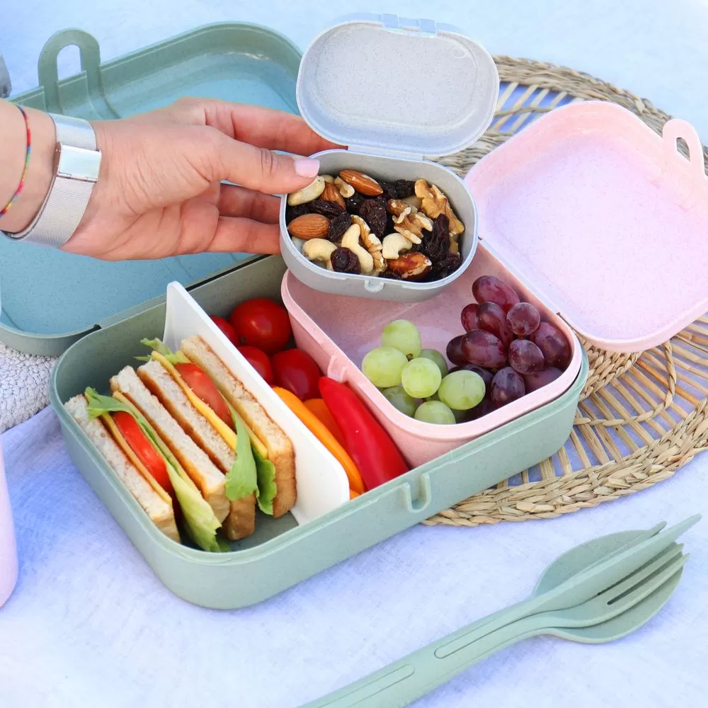 Миниатюрный ланчбокс Pascal Mini можно использовать самостоятельно — для орехов, фруктов или печенья, или вместе с ланчбоксами Pascal других размеров — в качестве надежного разделителя для содержимого большого контейнера: с ним не размокнут сухарики для салата, а фрукты не будут пахнуть вареным яйцом. Благодаря обтекаемой форме и плавным линиям его можно переносить в сумке или рюкзаке без риска повредить тетради, документы или другие важные предметы.