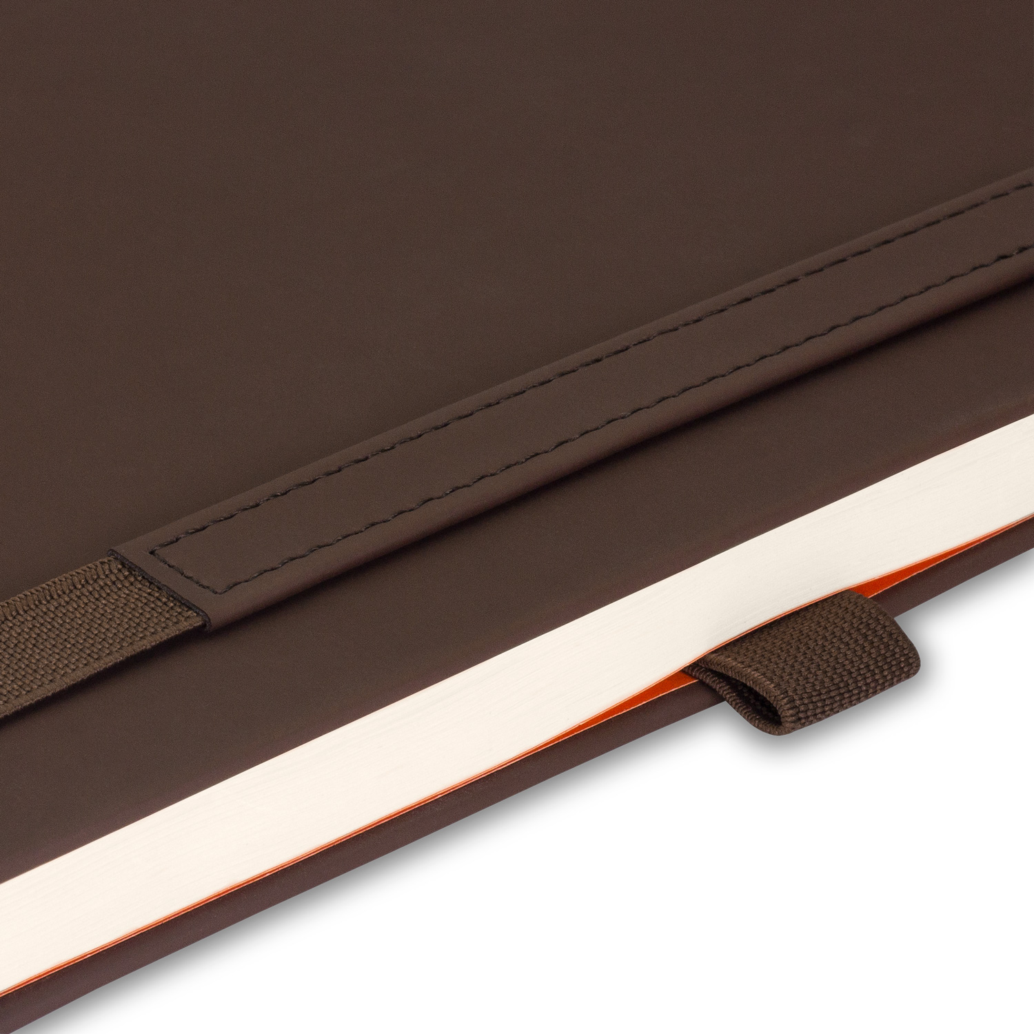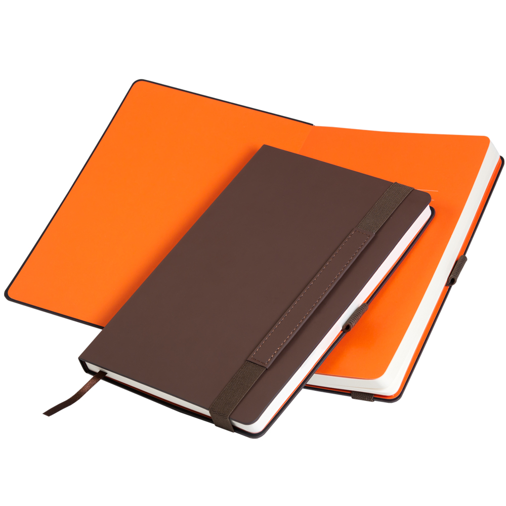 Недатированный ежедневник в оригинальном футуристическом дизайне. Жесткая обложка из искусственной кожи гладкая, матовая, со скругленными уголками. Покрытие – Soft Touch – износоустойчивое, не дает блеска. Цвет – коричневый, с эффектом пудры. Ярко-оранжевые матовые форзац и нахзац гармонично дополняют основную цветовую тему изделия, делая ее еще более стильной и атмосферной. Страницы светло-кремовые, гладкие, с легкой шелковистостью и со скругленными уголками. Придают облику изделия теплую уютную нотку. Срез матовый, в тон страниц. Бизнес-аксессуар дополнен одинарным коричневым атласным ляссе. Поверхность ляссе гладкая. Вертикальная фиксирующая резинка плотная, надежная, коричневого цвета в тон обложке. Декорирована прямоугольным фрагментом из материала обложки с прошивкой в тон. Есть удобная петелька для ручки, цвет которой совпадает с цветом резинки.Упаковка: пластиковая коробка - есть