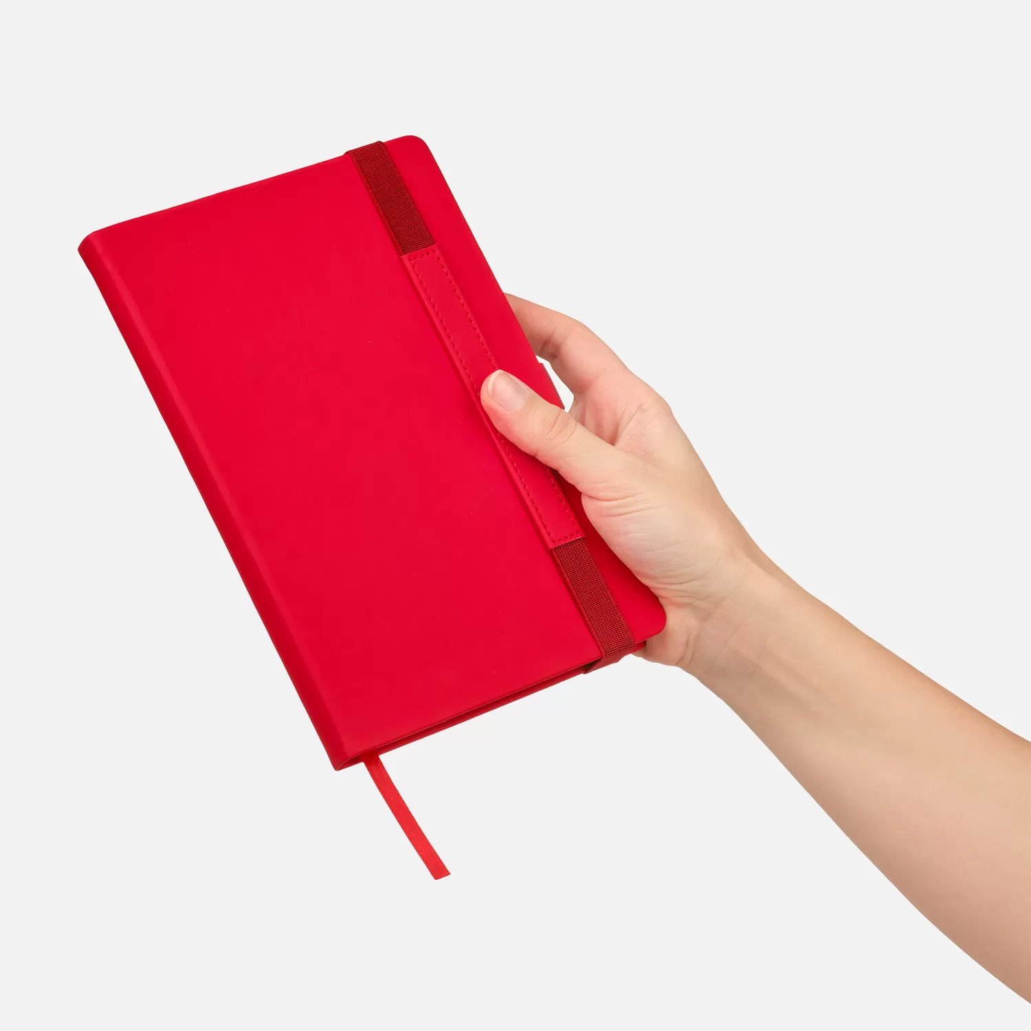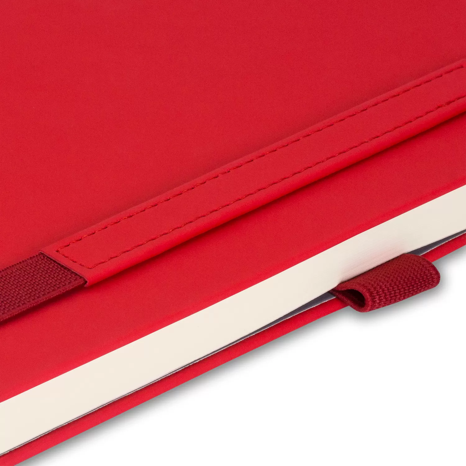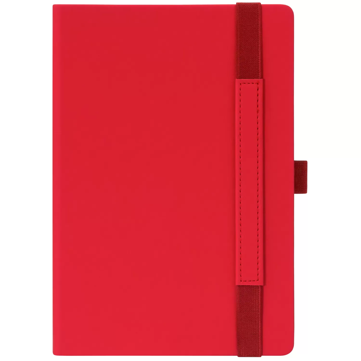Недатированный ежедневник в ярком, эффектном, комфортном красном цвете.Обложка жесткая, гладкая, матовая, из искусственной кожи, со скругленными уголками. Поверхность переплетного материала – Soft Touch – с легким эффектом пудры, износоустойчивая. Цвет – красный, насыщенный, приятен глазу. Серые матовые форзац и нахзац создают удачное контрастное сочетание с цветом обложки. Страницы теплого приятного светлого-кремового цвета, гладкие, с легкой шелковистостью и со скругленными уголками. Срез матовый, в тон страниц. Ляссе одинарное, атласное, красного цвета, в тон обложки. Тактильно шелковистое, с легким блеском. Вертикальная фиксирующая резинка плотная, надежная, красного цвета в тон обложки. Декорирована прямоугольным фрагментом из материала обложки с прошивкой по периметру в тон. Есть петелька для ручки в тон резинки.