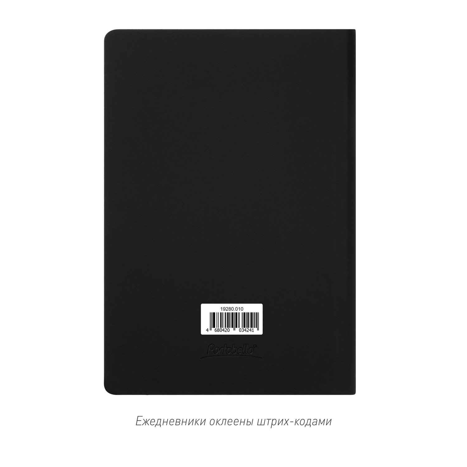 Недатированный ежедневник с гибкой матовой обложкой из качественной искусственной кожи со скругленными уголками. Покрытие с эффектом Soft Touch, гладкое, матовое, слегка припудренное, не блестит. Очень приятное на ощупь. Обложка не образует заломов, не расслаивается. Цвет – классический черный, глубокий, плотный, однородный. Форзац, нахзац и срез матовые, теплого кремового цвета. Страницы со скругленными уголками из гладкого шелковистого офсета, кремовые. Одинарное атласное кремовое ляссе с легким блеском. Ширина ляссе 6 мм. Общее настроение изделия строгое, официальное, лаконичное.Упаковка: нетБез упаковки (без стикера)