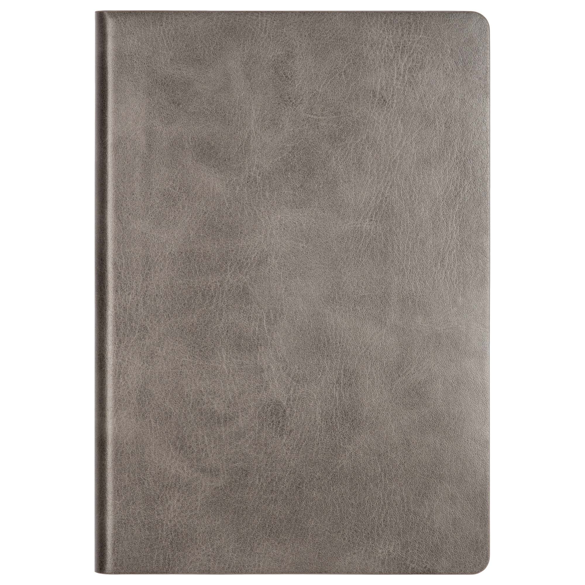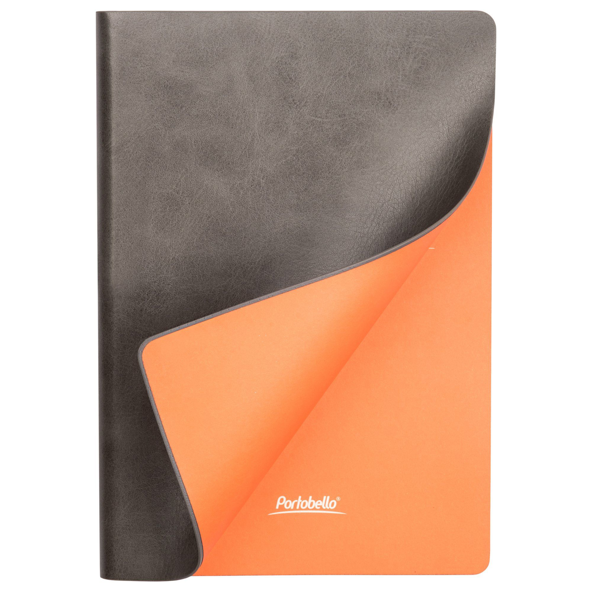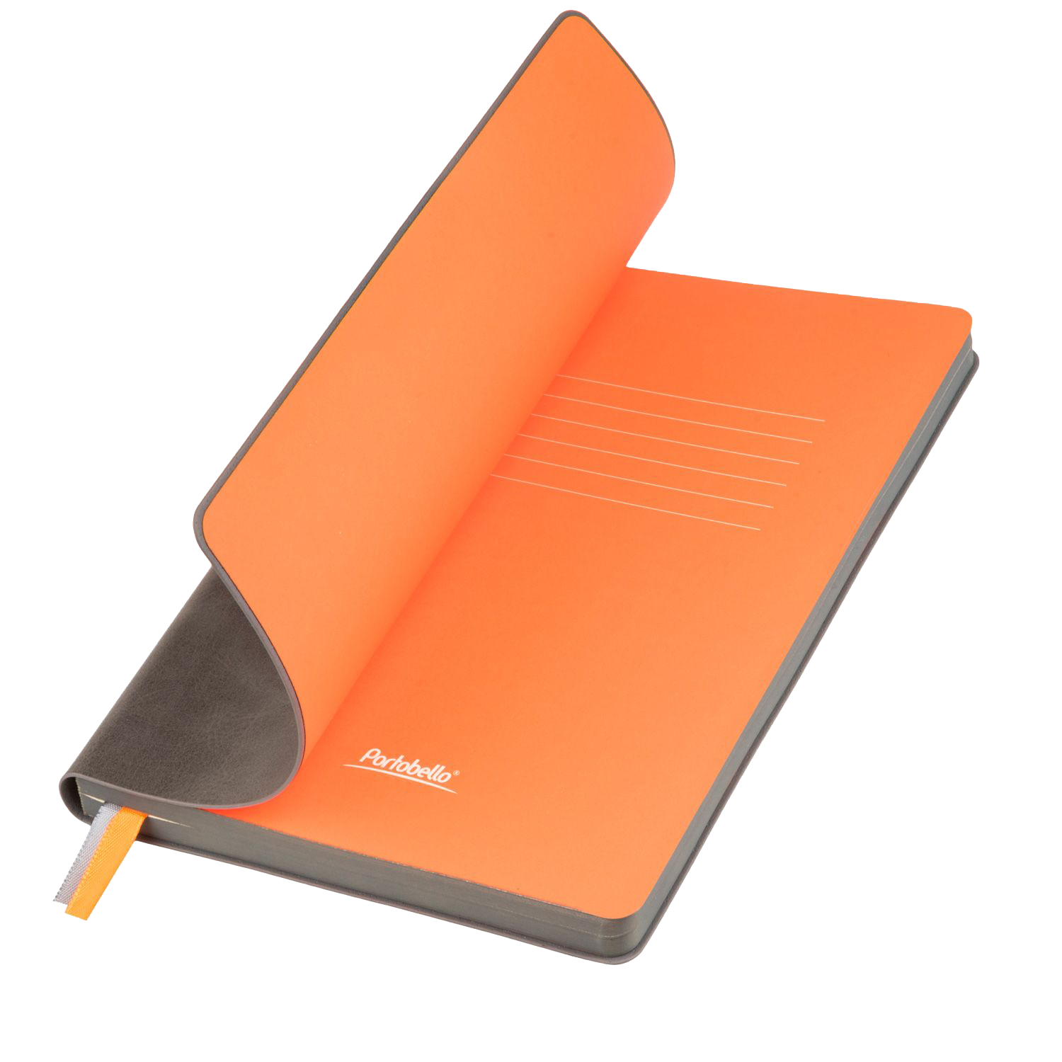 Яркий и в то же время лаконичный недатированный ежедневник выполнен в современном дизайне. Цветовая палитра составлена из контрастных ярких и приглушенных тонов. Гибкая обложка из искусственной полуглянцевой кожи (материал Voyage/Atlas) со скругленными уголками. Поверхность слегка фактурная, с едва ощутимой сеткой мелких морщинок и прожилок. Цвет – серый, естественный, спокойный, с неоднородным рисунком, напоминающим мраморные разводы и мягкими переходами тона от темного к более светлому. Форзац и нахзац матовые, сочного оранжевого цвета. Теплые кремовые страницы со скругленными уголками выполнены из гладкого шелковистого офсета. Срез серый, матовый. Изделие дополнено двойным атласным ляссе, составленным из лент серого и оранжевого цветов. Ленты имеют легкий блеск, ширина каждой 6 мм.