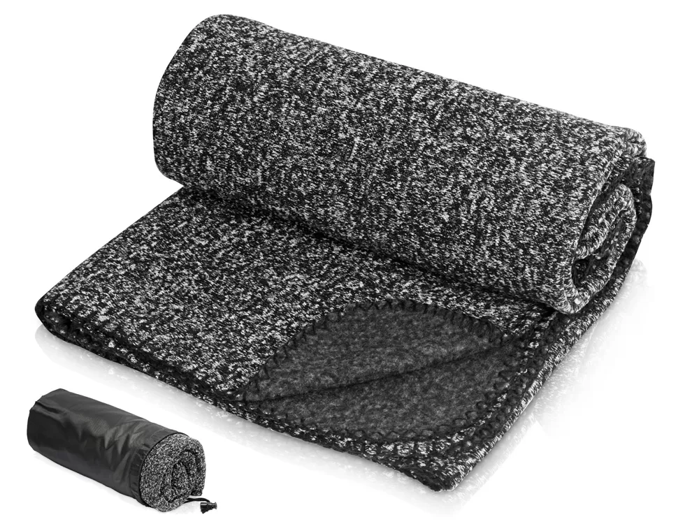 Теплый и плотный вязаный плед согреет в прохладный день. В комплекте черный мешок размером 325*130 мм на шнурке - удобно хранить и брать в дорогу.