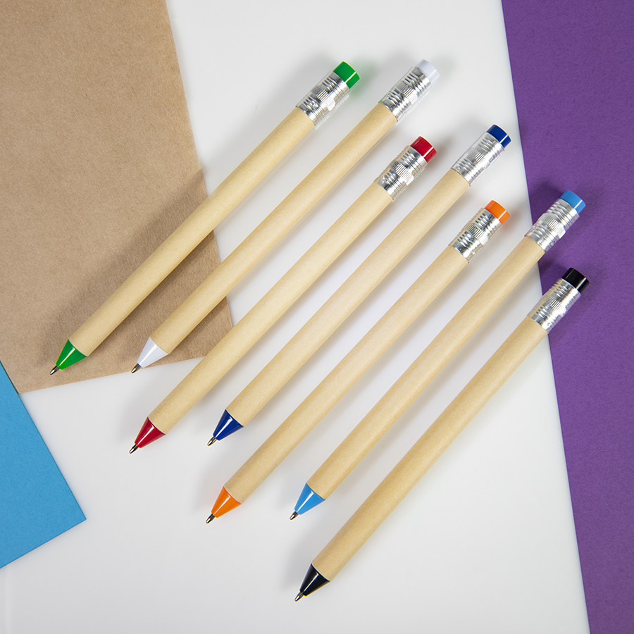 Забавная ручка в форме карандаша с корпусом из переработанного картона. Необычный сувенир и функциональный пишущий инструмент.