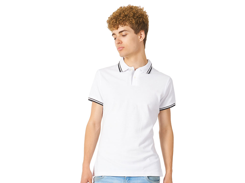 Рубашка-поло Erie с окантовкой. Воротник и манжеты резинка 1х1. Мужская модель с двумя пуговицами, женская - 4 пуговицы в тон изделия. Обшивка внутри воротника. Женская модель с разрезами по бокам. Женская модель приталена. Пике, 100% чесаный хлопок. Плотность 180 г/м2.