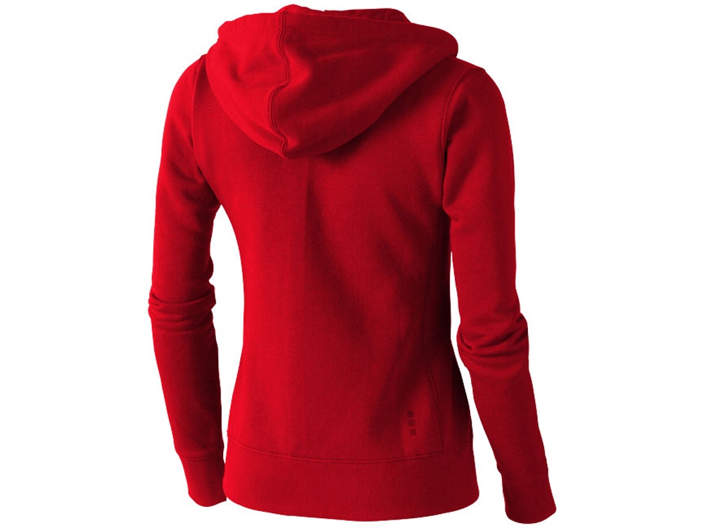 Женский свитер Arora с капюшоном и застежкой-молнией на всю длину. Стандартный покрой. Резинка 2х2 на боковых вставках, поясе и манжетах. Карман кенгуру. Мужская и женская модели с завязками на капюшоне. Подкладка внутри капюшона. Атласная лента внутри горловины. Принт лого сзади в тон изделия. Серебристые люверсы с лого. Ворсистый внутри для мягкости, тепла и комфорта. Трикотаж: 80% хлопок и 20% полиэстер, чесаная внутренняя сторона. 300 г/м².