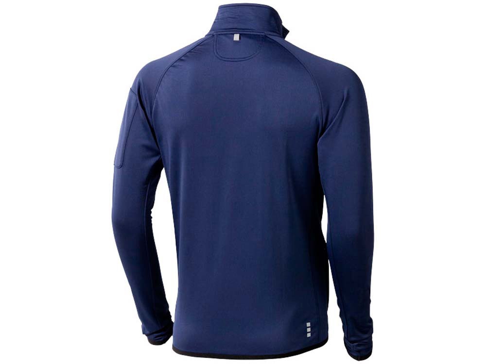 Флисовая куртка Mani с застежкой-молнией на всю длину. Стандартный покрой. Отверстие для большого пальца. Резинка на манжетах и внизу куртки. Внутренний противоветровой клапан и защита подбородка. Карман для электроники внутри правого кармана. Отражающие детали. Карманы на рукаве и для рук на молнии. Атласная лента внутри горловины. Эластичность в четырех направлениях. Контрастный цвет полумесяца. Однослойная джерси, 91% полиэстер и 9% эластан. Чесаная внутренняя сторона. 245 г/м².