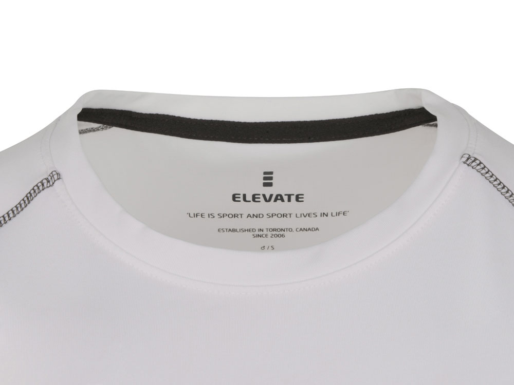 Футболка с короткими рукавами Kingston. Стандартный покрой. Атласная лента внутри горловины. Воротник из ткани изделия. Cool Fit. Отражающий лого сзади. Узкие контрастные полоски на рукавах реглан. Небольшой двойной шов на рукаве и внизу на кромке. Фигурные швы. Однослойная джерси, 88% полиэстер и 12% эластан. 200 г/м².