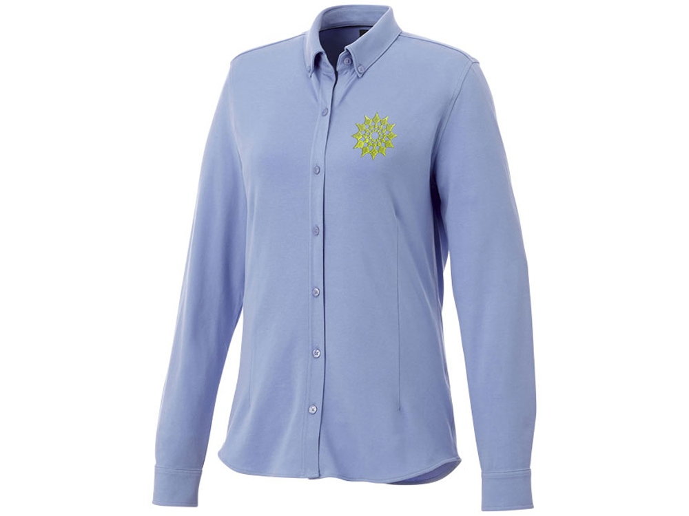 Женская рубашка Bigelow из пике с длинным рукавом. Воротник из ткани изделия. Стрейтч-ткань. Регулируемый манжет на одной пуговице. Воротник на пуговицах. Швы моделирующие фигуру и приталенный крой. Атласная окантовка внутренней части горловины. Гравированные пуговицы в цвет изделия. Тканая метка. Двойное трикотажное пике, 95% хлопок и 5% эластан. 200 г/м².
