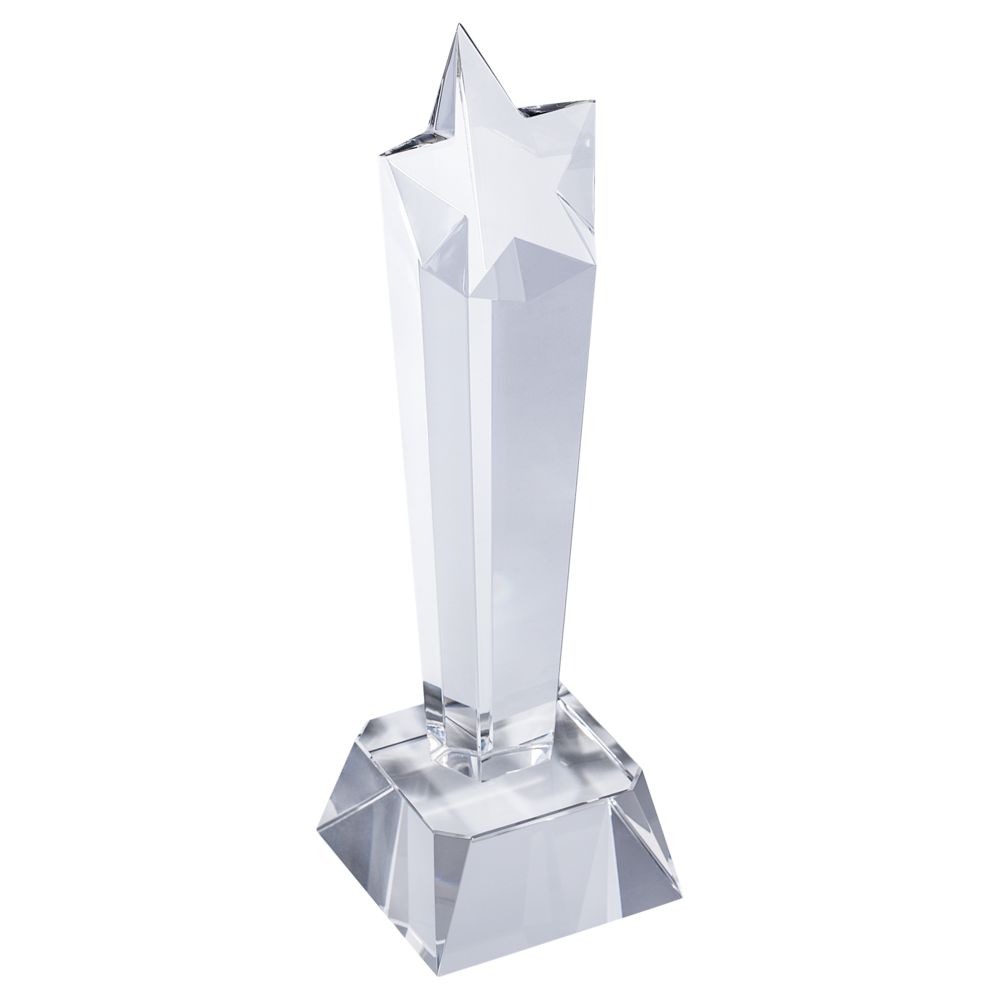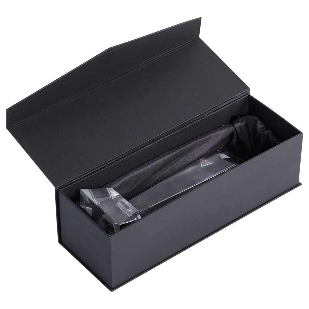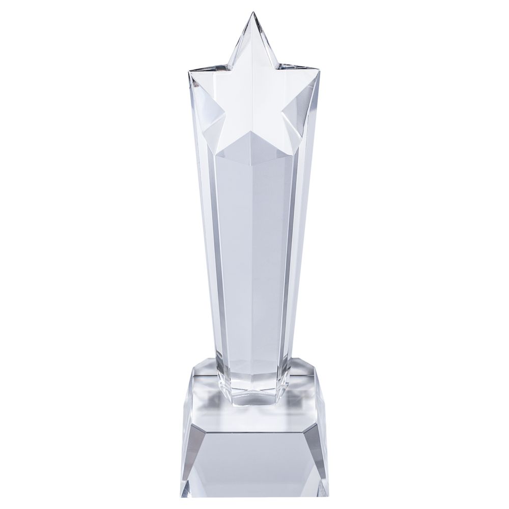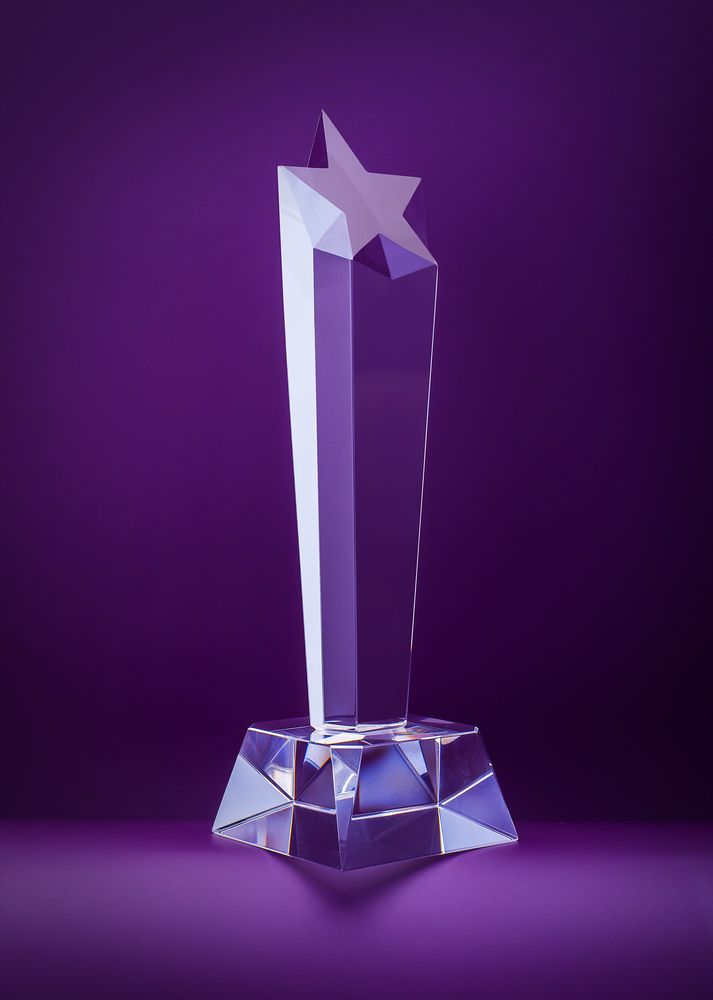 Стела изготовлена из хрусталя К9, в основе которого лежит оптическое боросиликатное стекло. Эту марку хрусталя отличает низкий процент посторонних включений, высокий показатель преломления и высокая прозрачность — идеальные качества для изготовления наград премиального уровня.