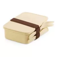 Прекрасный подарок для всех, кто с трепетом и заботой относится к окружающему миру, ведь в его составе 50% экологически чистого пшеничного волокна и 50% пластика. Контейнер для еды закрывается крышкой, выполненной из бамбука, материала, который также не несет никакого вреда природе. В комплекте тканевый ремешок и приборы.