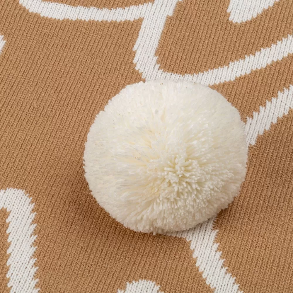 Мягкий плед с ярким рисунком пригодится в игровой комнате, в автокресле или для прогулок в прохладное время года. Яркие помпоны делают рисунок более живым и объемным.