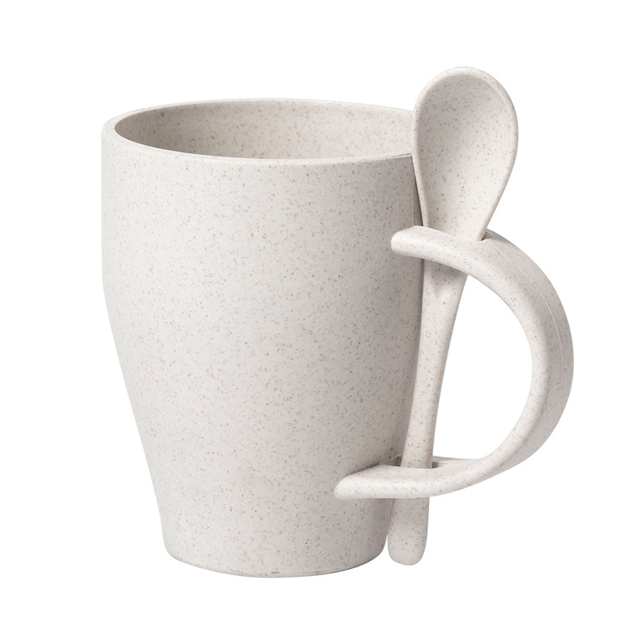 Кружка и ложка выполнены из полипропилена с добавлением бамбуковой стружки – модного сегодня материала. Это не просто искусственный пластик, а материал с добавлением натурального ингредиента – экологичного, безопасного, гипоаллергенного и антибактерицидного.