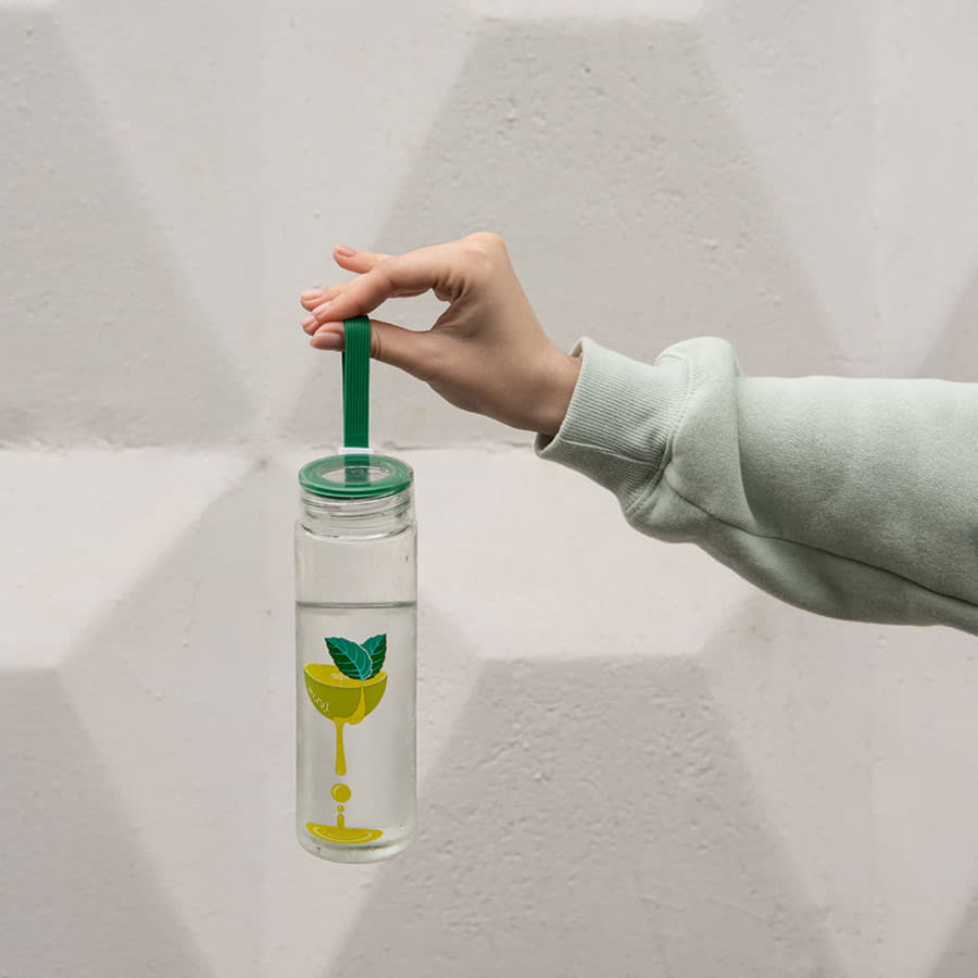 Стеклянная бутылка HELUX для воды объемом 420 мл. Не содержит BPA. Стильный прозрачный корпус бутылки подчеркивается яркими цветными вставками на крышке и удобной регулируемой ручкой для переноски.