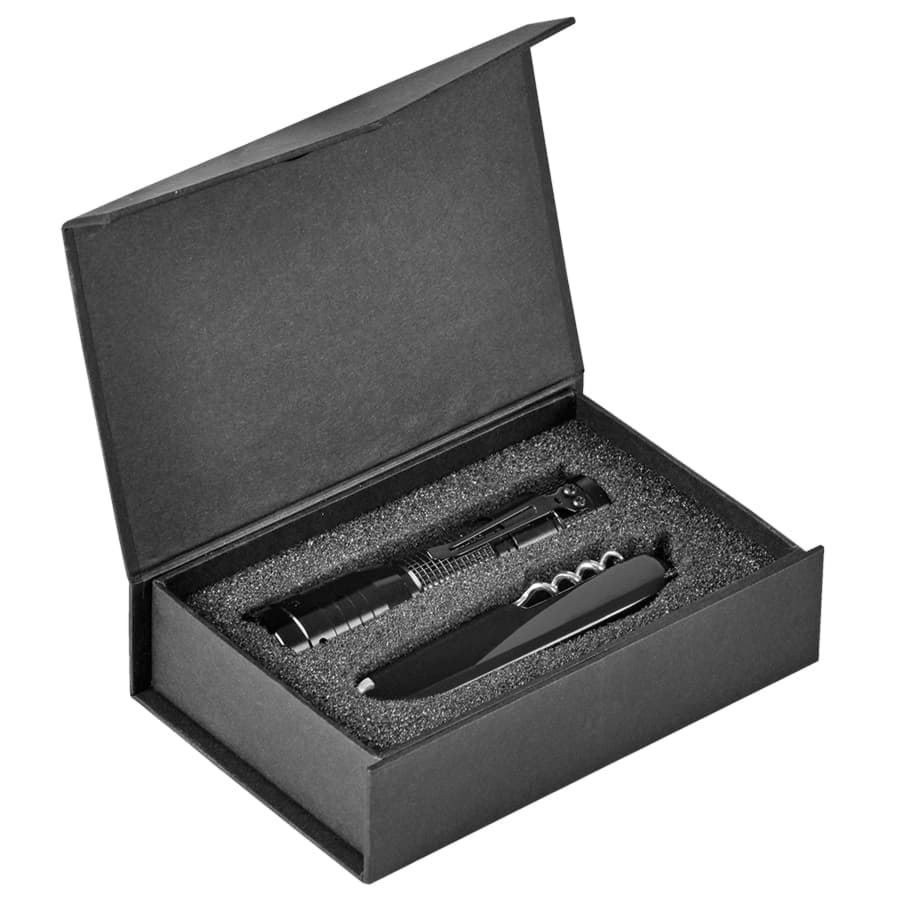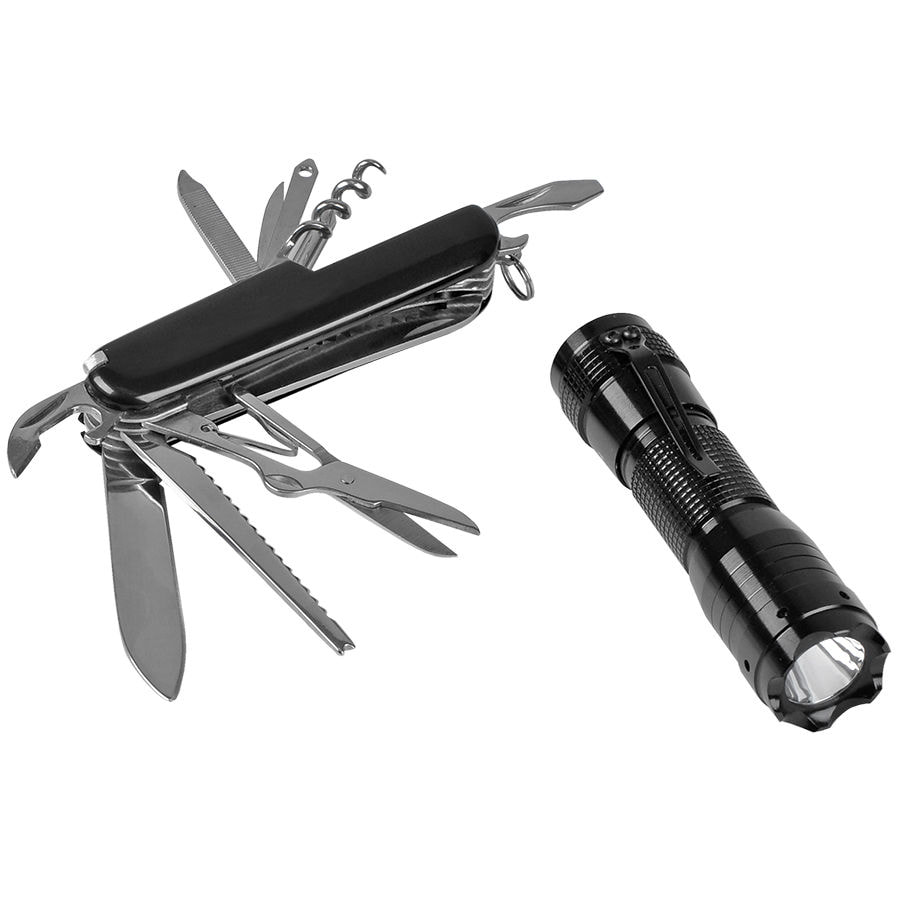 Набор: нож многофункциональный (13 функций) и фонарь в подарочной упаковке, черный