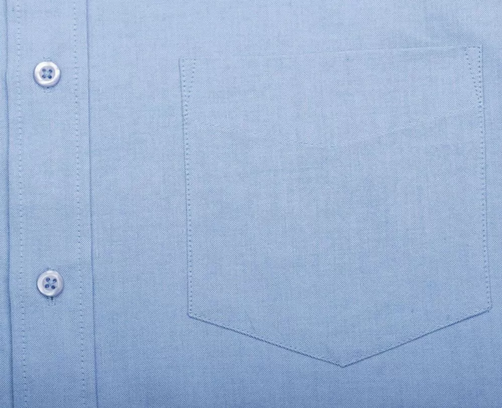 Рубашка из ткани «Оксфорд» с нагрудным карманом слева. На спинке две симметричные складки, воротник на двух пуговицах, регулируемые манжеты, планка с семью пуговицами в тон.