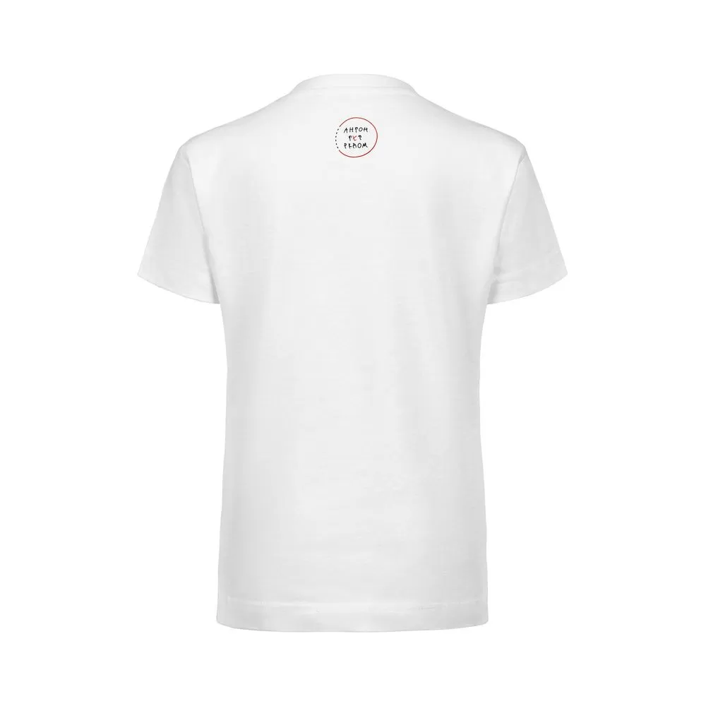 Радостно видеть, как из наброска, меткой фразы, рождаются реальные вещи, как идея обретает форму. Для студентов инклюзивных мастерских «Антон тут рядом» это не только важный творческий опыт, но и возможность заниматься любимым делом и находить друзей — 10% от продажи изделий идет на поддержку работы фонда.Классическая кроеная футболка с боковыми швами и укрепляющей тесьмой по вороту. Край ворота в резинку с эластаном.