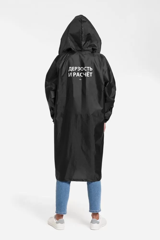 Черный плащ только для супергероев! Классический плащ-дождевик с фразой из песни одноименного персонажа поможет не только выразить победоносную практичность и отважный нрав, но и защитит надежно от дождя.