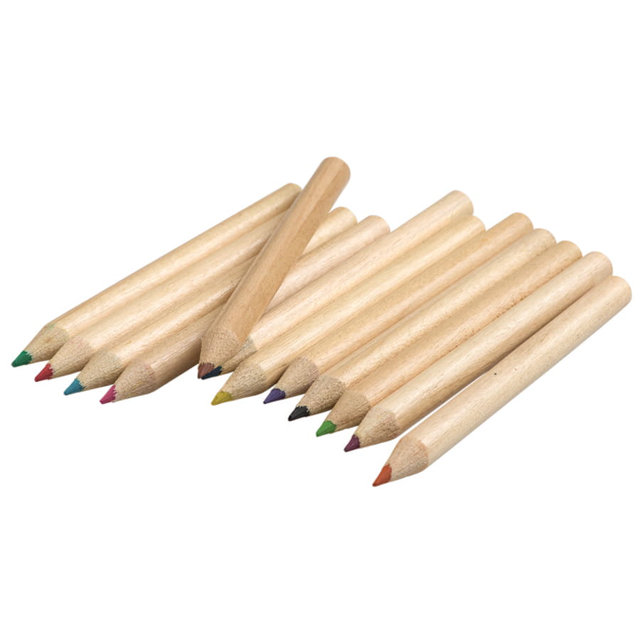 Карандаши заточены. В наборе 12 цветов: желтый, оранжевый, красный, розовый, фиолетовый, бордовый, голубой, синий, светло-зеленый, зеленый, коричневый, черный