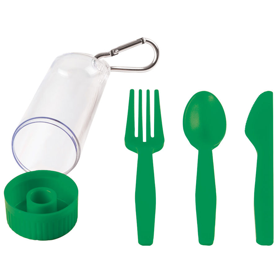 Набор 'Pocket':ложка,вилка,нож в футляре с карабином, зеленый