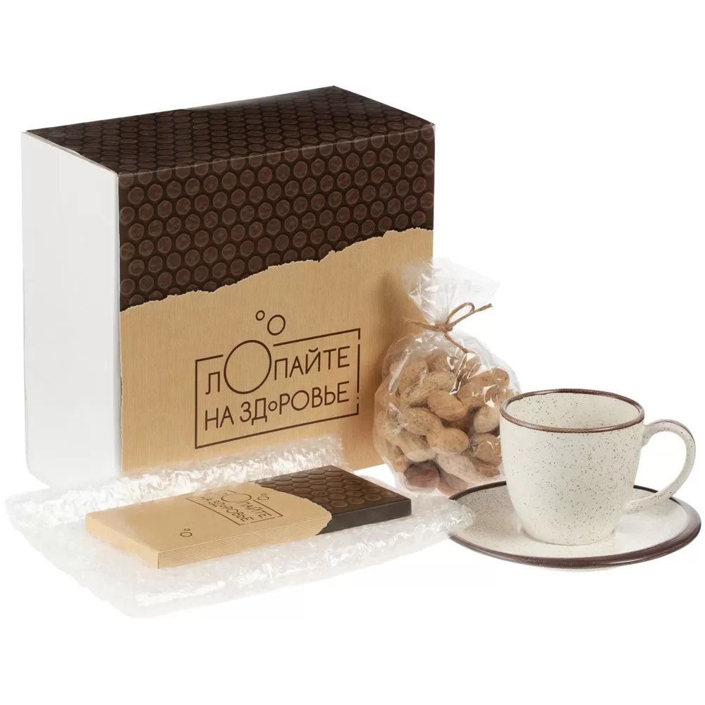 | Размеры | чашка: диаметр 8 см, высота 7,5 см; блюдце: диаметр 14,8 см; шоколад: 15,5х7,2 см; орехи: 7х13х5 см; упаковка: 21,3х20,2х10,7 см |