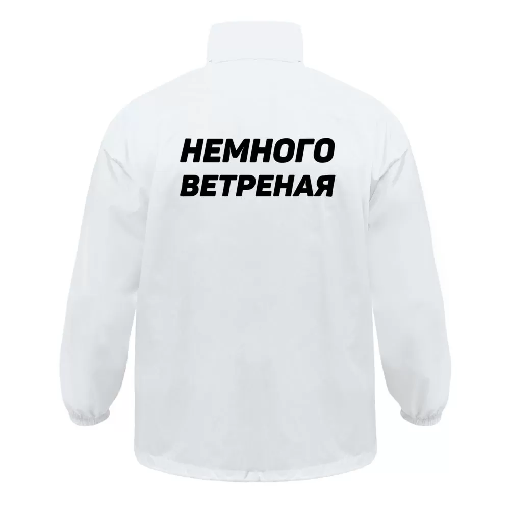 Ветровка на молнии с капюшоном и одним карманом с правой стороны.