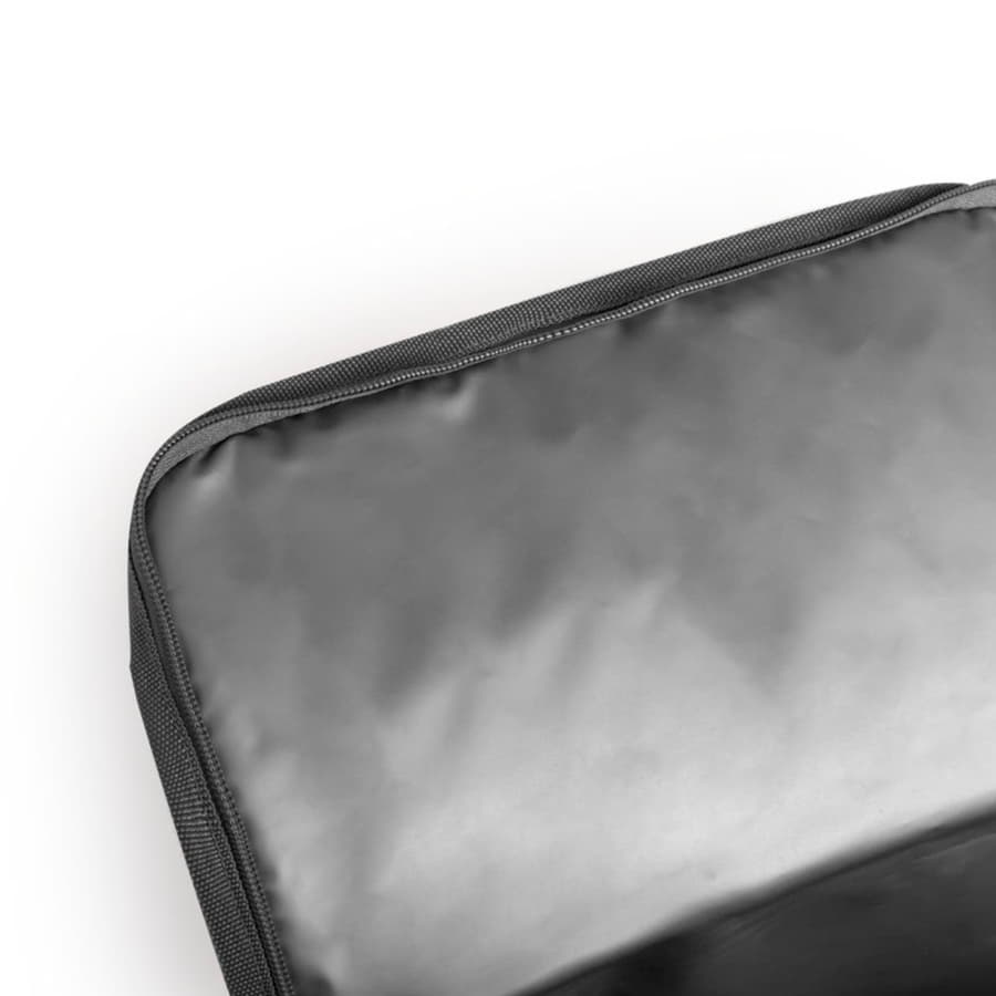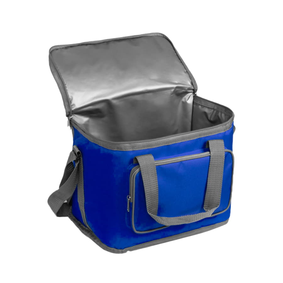 Сумка-холодильник из прочного полиэстера 600D с внутренней отделкой из PEVA (термопластик). На ручках предусмотрена вставка из нейлона для усиления прочности. Регулируемая длина наплечного ремня.