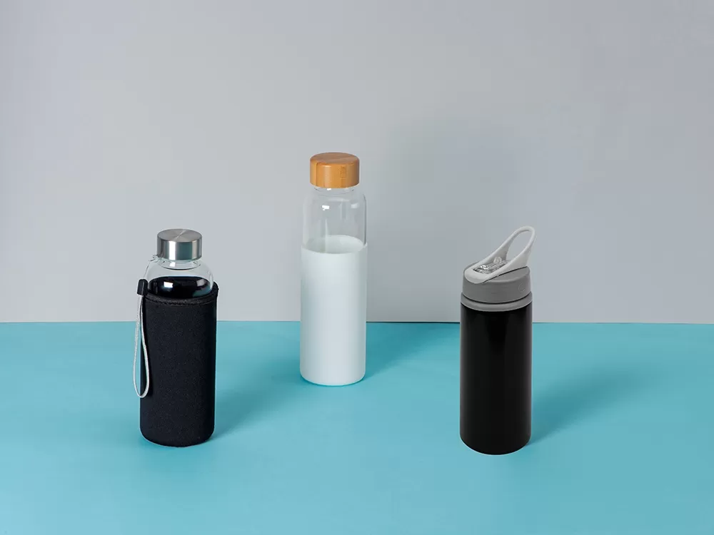 Бутылка для воды стеклянная Refine, в чехле, 550 мл, черный