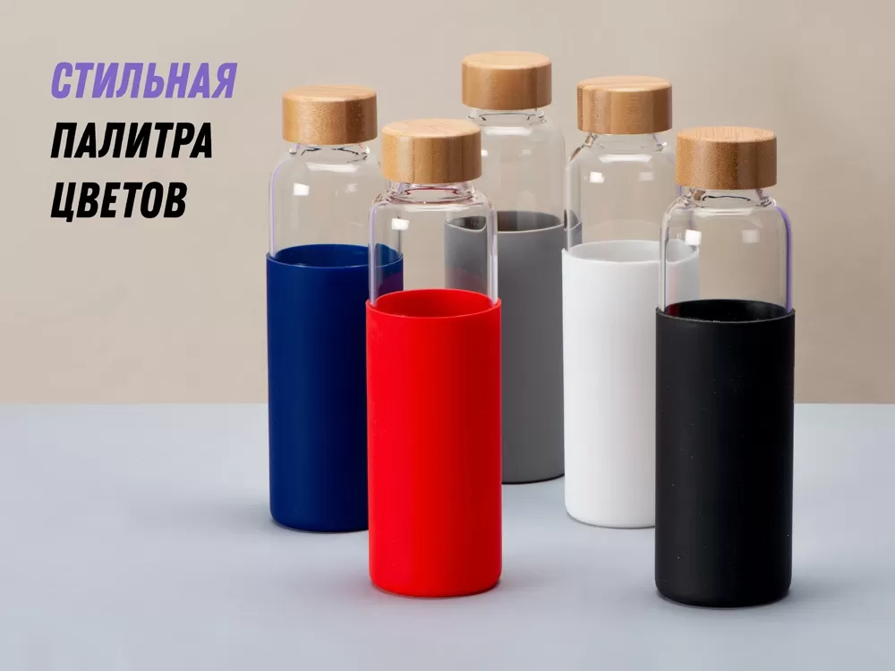 Стильная бутылка для воды сразу привлечет внимание к себе, где бы Вы ее ни достали, так как представляет собой идеальную композицию из трех экологичных материалов. Бутылка выполнена из качественного боросиликатного стекла, поэтому абсолютно не влияет на вкус и запах напитков. Силиконовый чехол поможет защитить бутылку от повреждений и легких падений, также чехол выполняет анти-скользящую функцию. Крышка выполнена из натурального бамбука. Не замораживайте и не используйте бутылку в микроволновке. Бутылка легко моется. Объем 550мл.