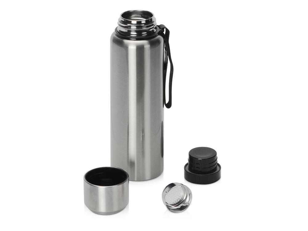 Вакуумный термос c двойными стенками из пищевой нержавеющей стали 304 марки для небольших путешествий и отдыха на природе. Надежно удерживает тепло и холод в течение 24 часов. Крышку можно использовать в качестве чашки. В комплекте имеется съемное ситечко из нержавеющей стали. Имеется прочный и удобный ремешок для переноски. Объем 800 мл.