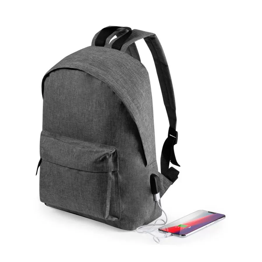 · USB разъем для подзарядки вашего устройства (внутри рюкзака расположен кабель для соединения с power bank)