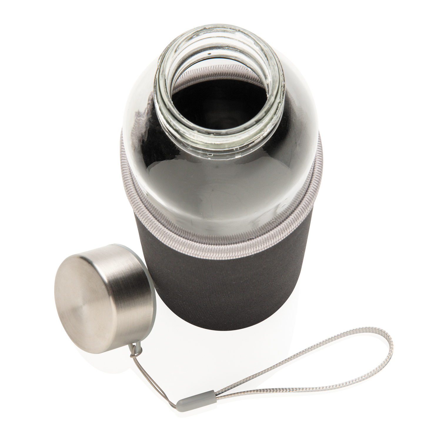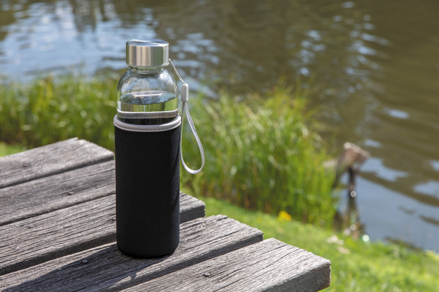 Идеальный вариант для тех, кто предпочитает пить из стекла, а не из нержавеющей стали. Бутылка поставляется с цветным чехлом из неопрена, объема 500 мл хватит для небольших поездок. Есть ремешок для удобства переноски. Бутылка герметичная, с завинчивающейся крышкой из нержавеющей стали. Подходит только для холодных напитков. Не содержит BPA.
