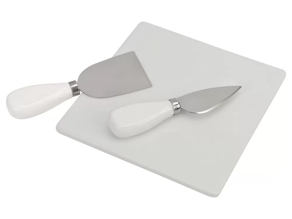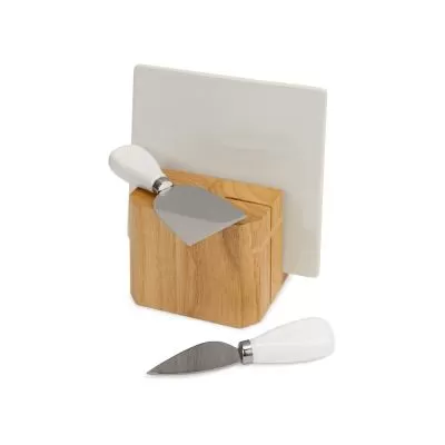 Набор для сыра Cheese Break: 2 ножа керамических на деревянной подставке, керамическая доска