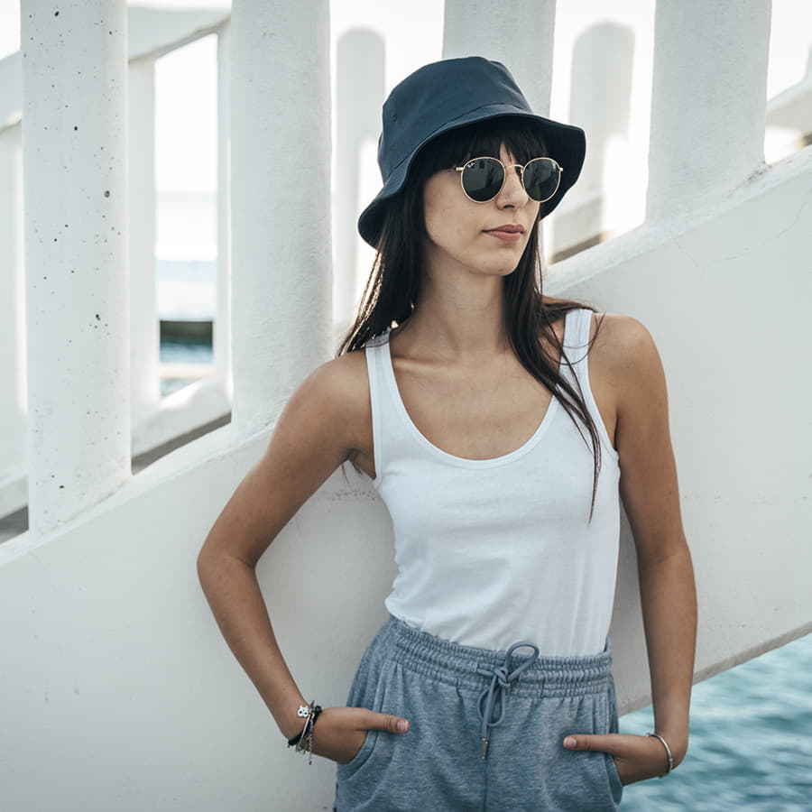 Стильная панама GEO изготовлена из 100% переработанного полиэстера. Она свободно облегает голову, создавая непринуждённый образ.