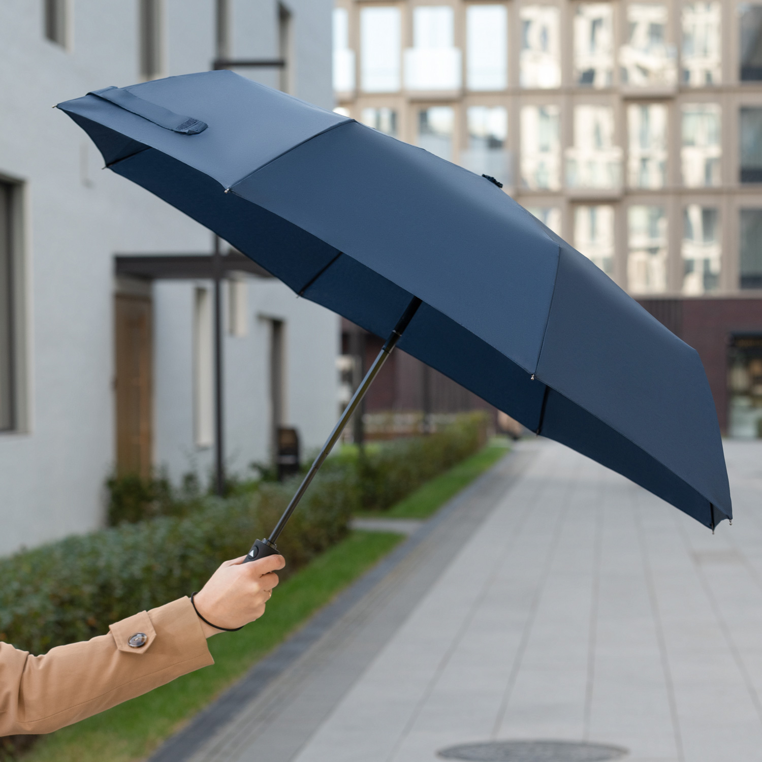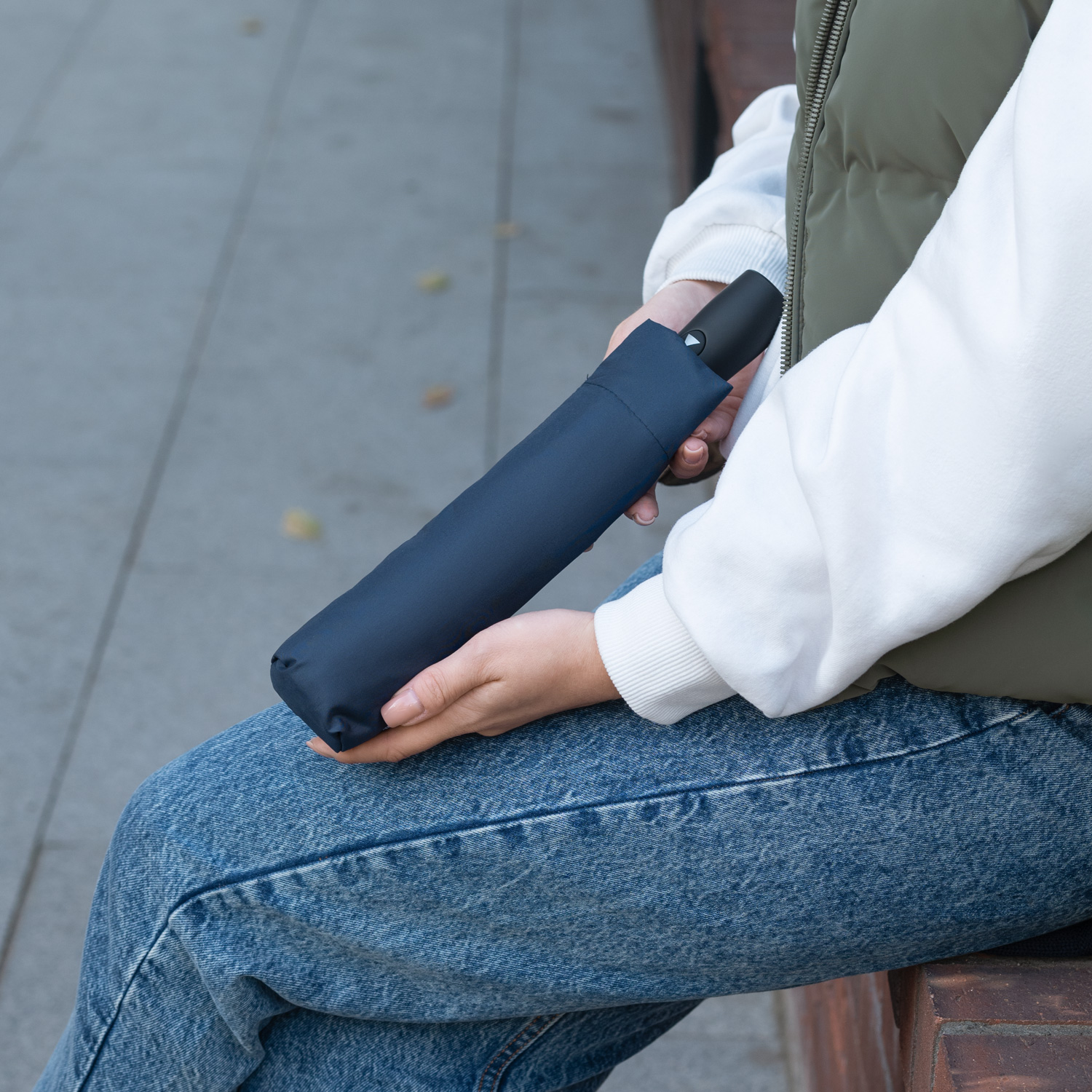 Зонт складной, полуавтоматДлина 63 см, диаметр купола 117см, размер в сложении 33 см8 спиц.Материал купола – эпонж, 190ТСпицы стеклопластик, каркас – сталь.Ручка с покрытием soft touchВес 400 грОснащен гибкими спицами с системой защиты от ветра.В комплекте плотный чехол и подарочная коробка