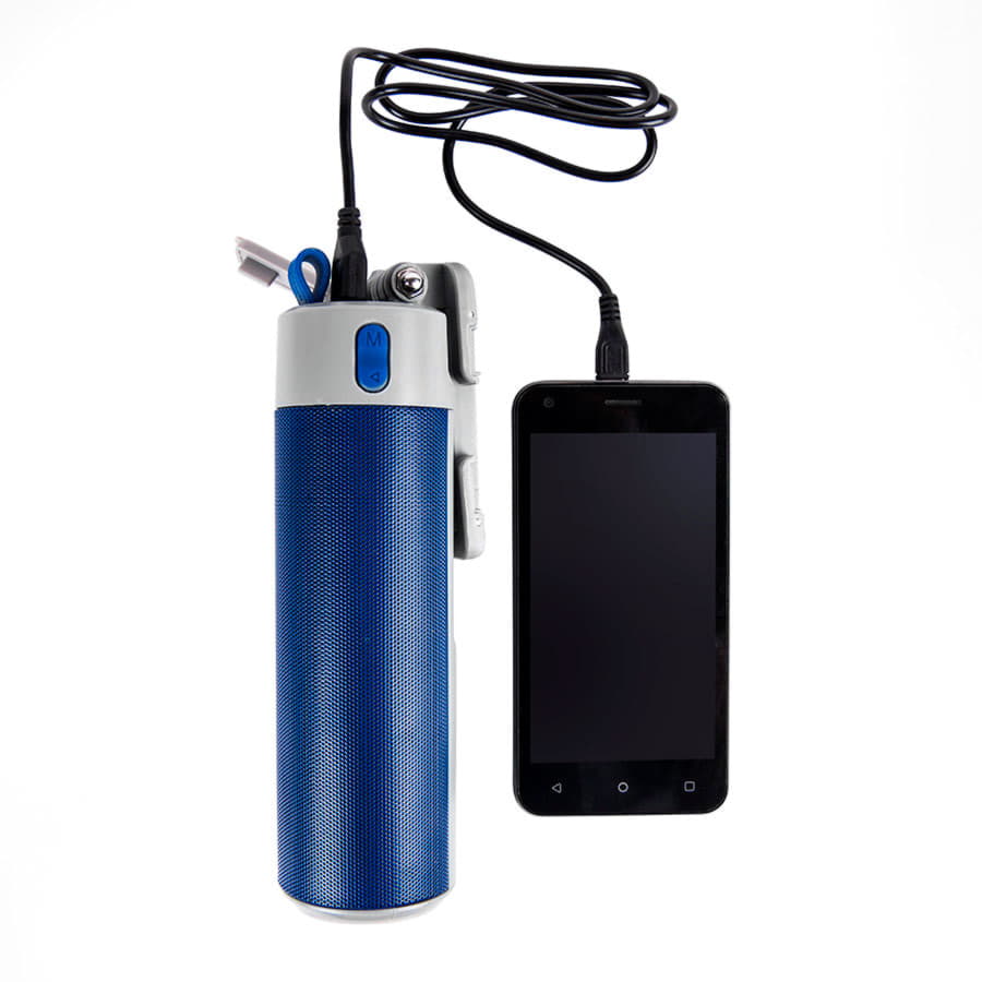 Bluetooth колонка TURBO TUBE с зарядным устройством (2000mAh) и моноподом, синий, серый