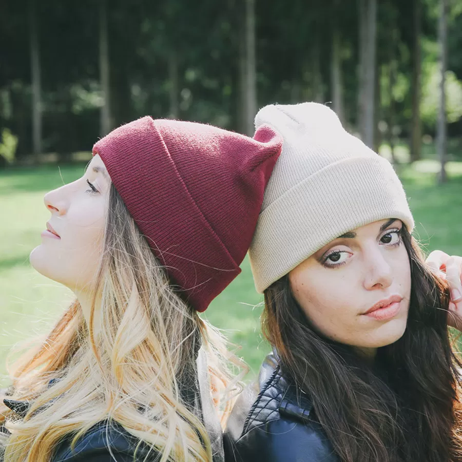 Шапка вязаная двойная Wind с отворотом, бордовый