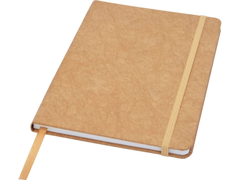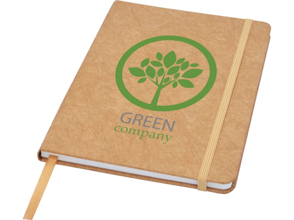 Устойчивый на разрыв блокнот формата A5 с внутренними страницами из каменной бумаги. В производстве каменной бумаги не используется дерево, а на сам процесс изготовления затрачивается гораздо меньше энергии в сравнении с производством переработанной или целлюлозной бумаги. Блокнот водонепроницаемый, поэтому вы сможете легко вытереть пролитую на него жидкость. Имеет ленту-закладку соответствующего цвета и эластичную резинку, а также 60 листов в линию плотностью 120 г/м², изготовленных из каменной бумаги. В упаковке из картона.