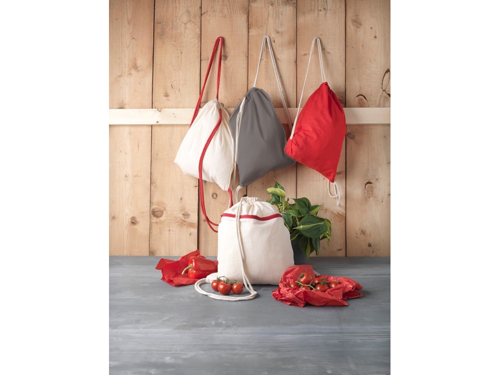 Большое основное отделение затягивается хлопковым шнурком. Прочность до 5 кг.