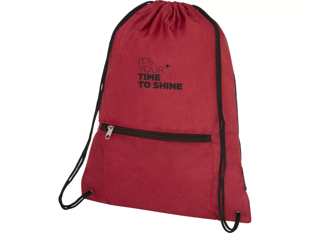 Рюкзак со шнурком и большим основным отделением, закрывающимся затяжкой шнурка черного цвета. Оформлен с эффектом меланжевой расцветки. Спереди расположен карман на молнии. Рюкзак можно полностью свернуть в этот карман и хранить в таком виде. Прочность до 5 кг. Реальный цвет изделия может незначительно отличаться в зависимости от особенностей набивки, окраски и структуры ткани. 300DПолиэстер, 210DПолиэстер.