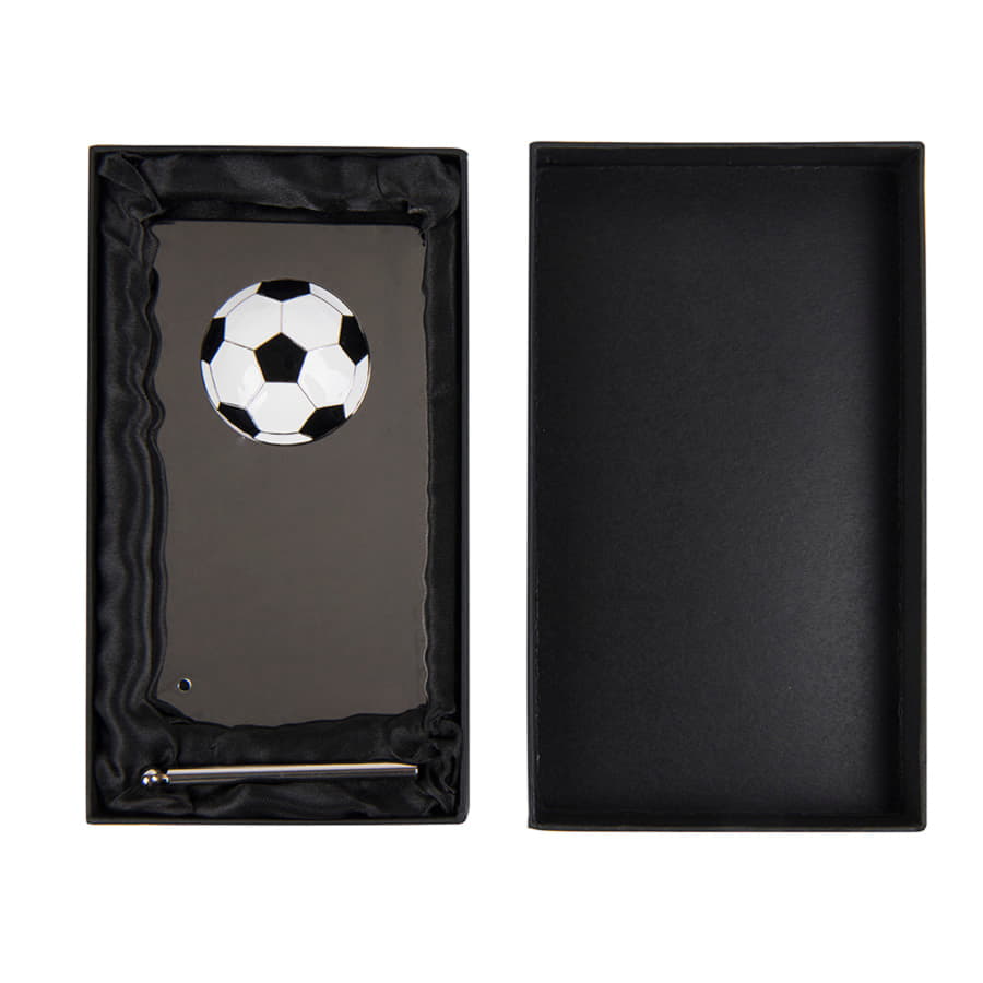 Наградная плакетка "Футбол", поставояется в черной подарочной упаковке с ложементом.