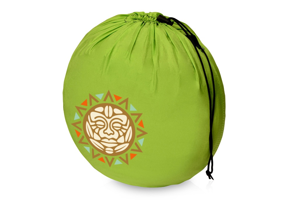 Гамак легко закрепляется на деревьях или каких-либо опорах, с помощью карабинов и веревок, которые идут в комплекте. Легко складывается в индивидуальный мешок, на котором отлично будет смотреть логотип или корпоративный слоган.