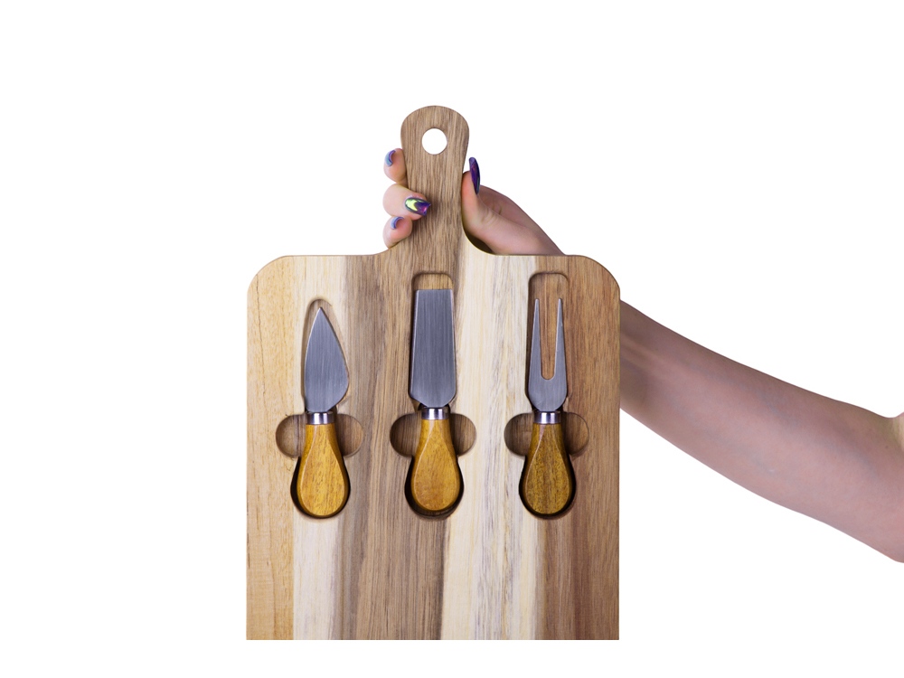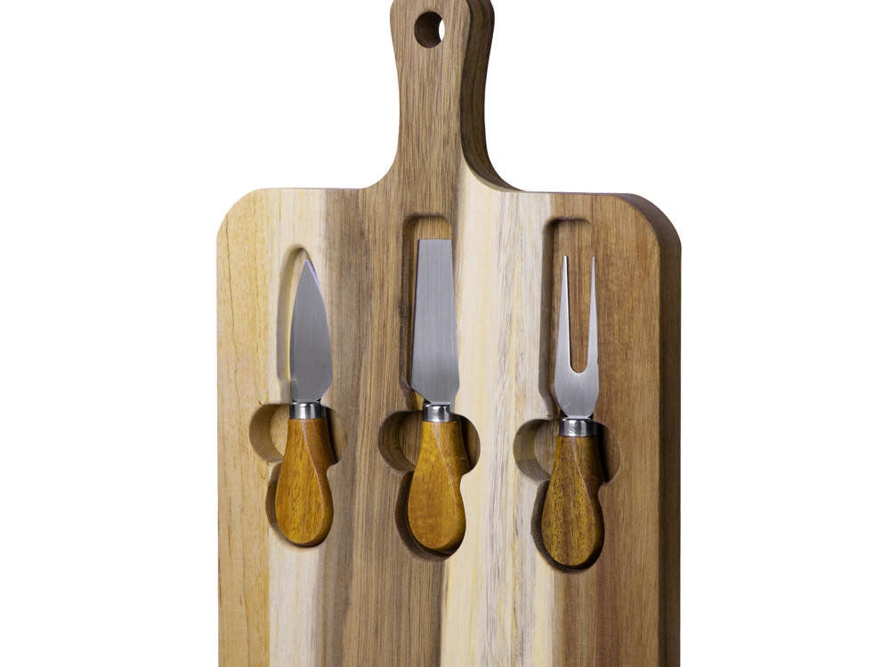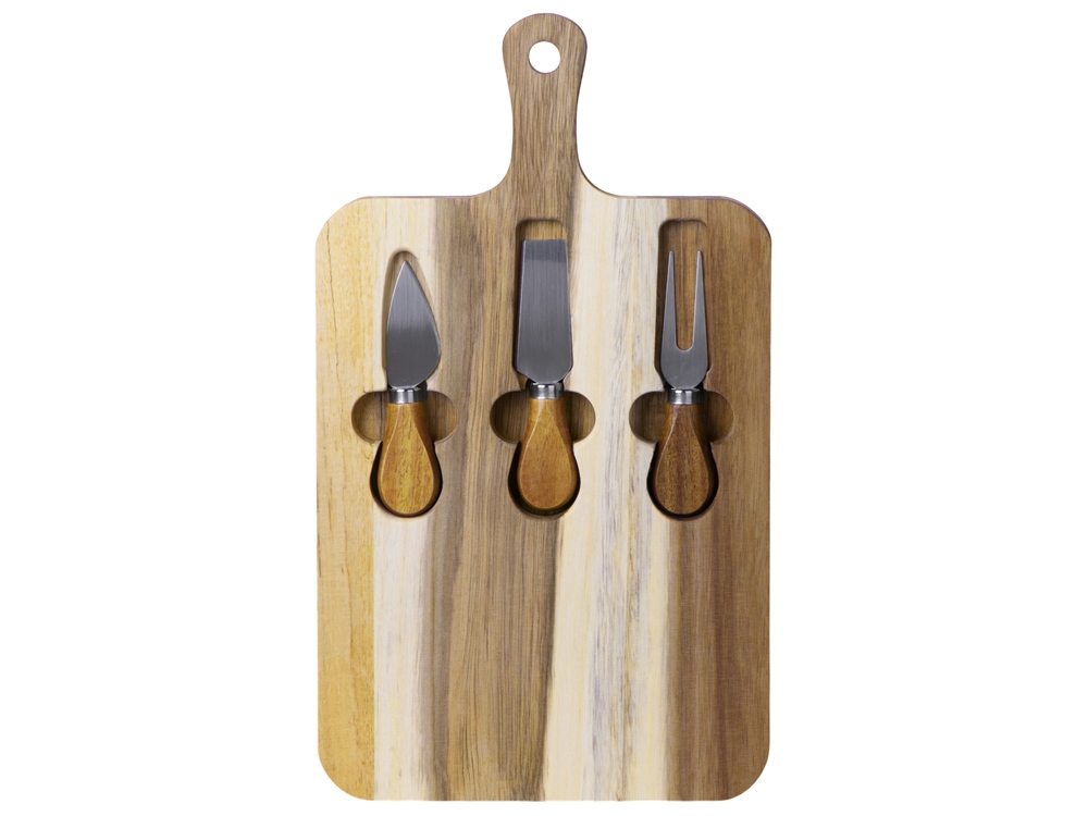 | Комплектность | разделочная доска 21,5 х 37,3 х 2 см, нож листовидный 11,2 см, нож-лопатка для мягкого сыра 12,2 см, вилка 12,3 см |