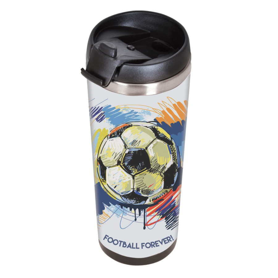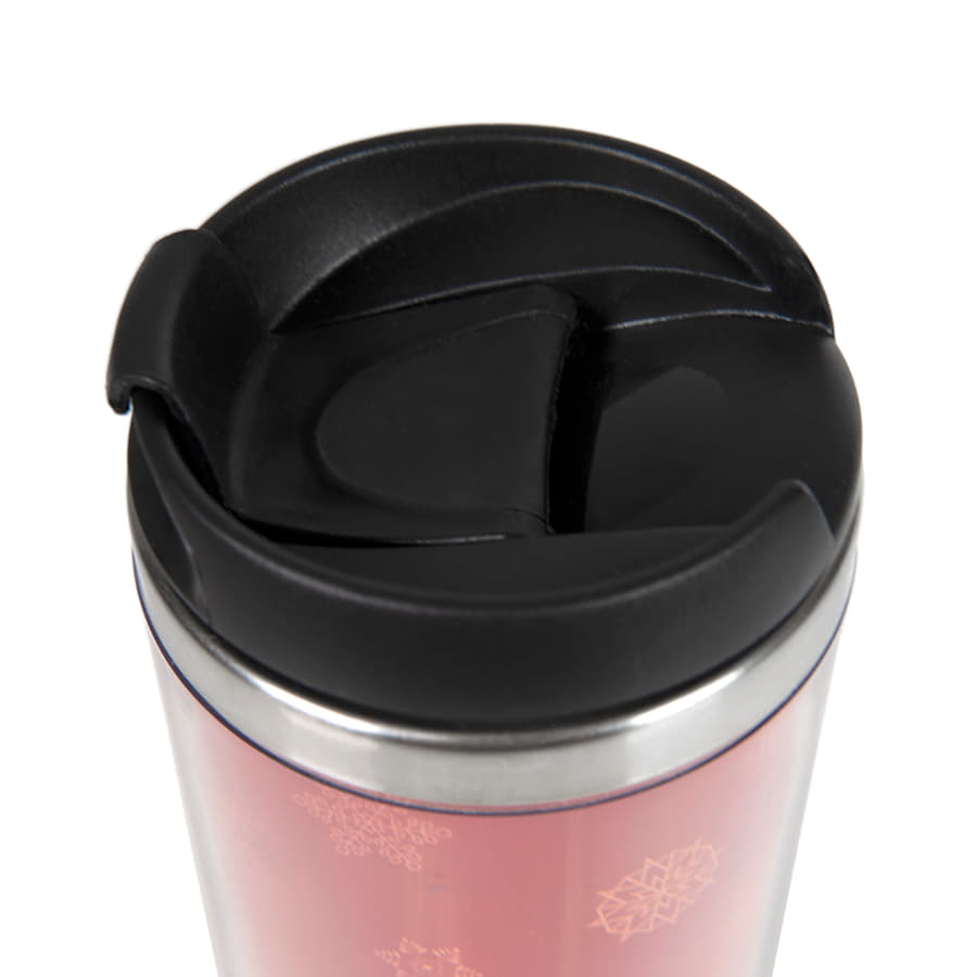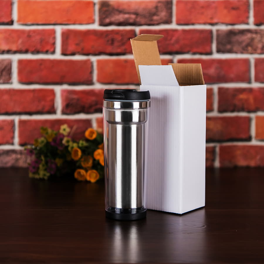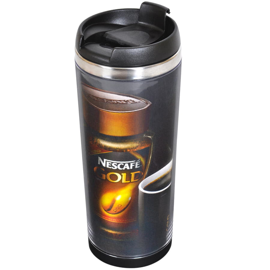 Термокружка с колбой из нержавеющей стали с огромным полем для печати, на котором можно разместить не просто логотип, а целый буклет. Полноцветная вставка занимает всю поверхность стакана и смотрится очень органично. Для сборки и разборки не требуются клей или специальные инструменты - изображение помещают в пространство между внешним и внутренним слоями корпуса.