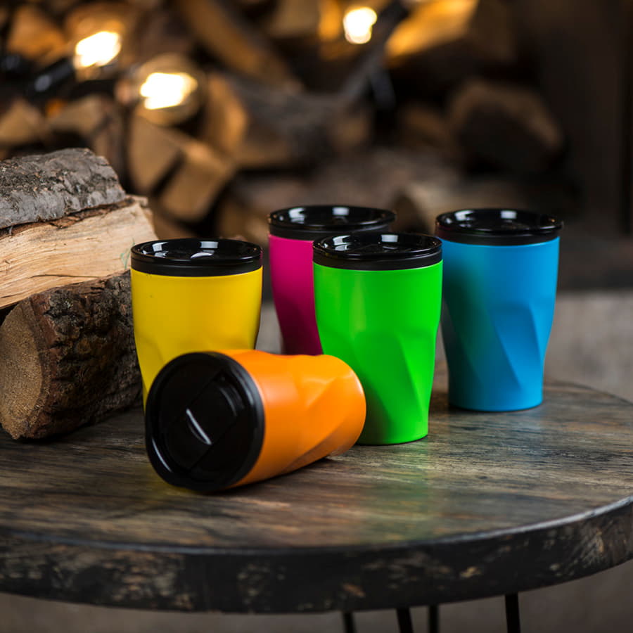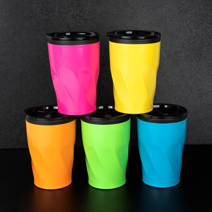 Коллекция дорожных промо-кружек NEON, отличается яркими матовыми цветами и оригинальной формой.