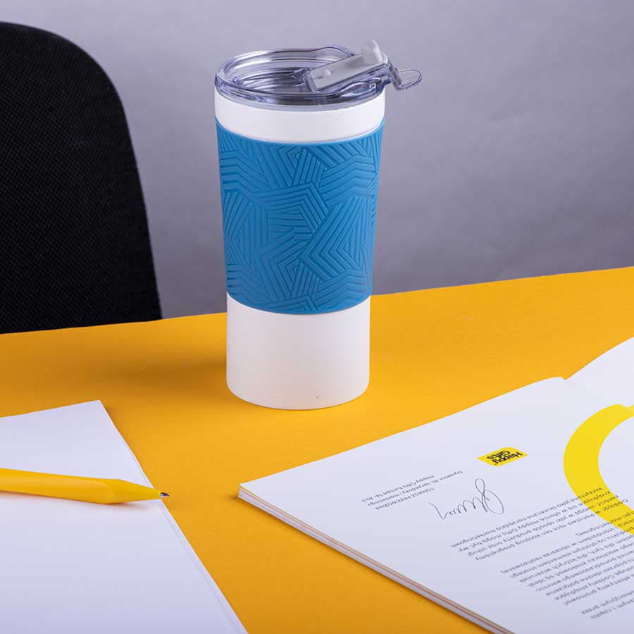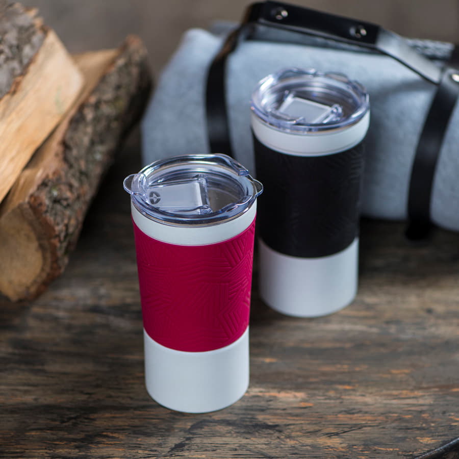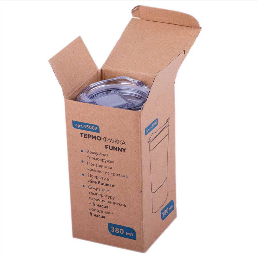 Вакуумная термокружка с покрытием "ice flower" и силиконовой манжетой.
