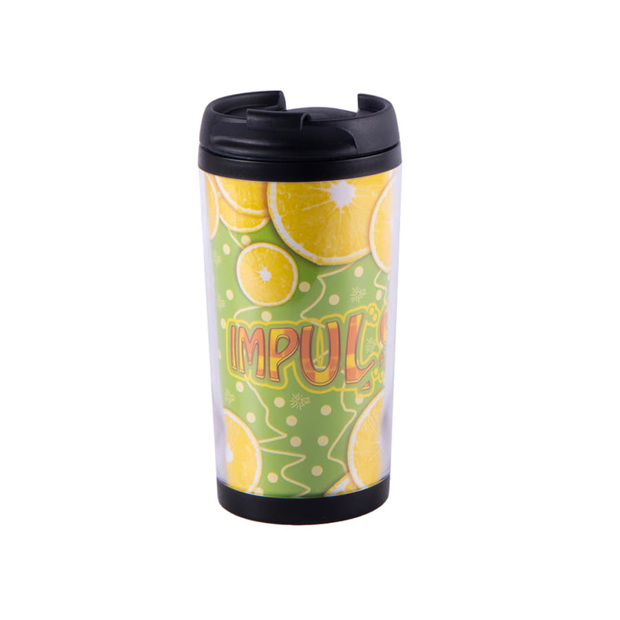 Термокружка IMPULSE (герметичная) с колбой из пластика и огромным полем для печати, на котором можно разместить не просто логотип, а целый буклет. Полноцветная вставка занимает всю поверхность стакана и смотрится очень органично. Для сборки и разборки не требуются клей или специальные инструменты - изображение помещают в пространство между внешним и внутренним слоями корпуса.