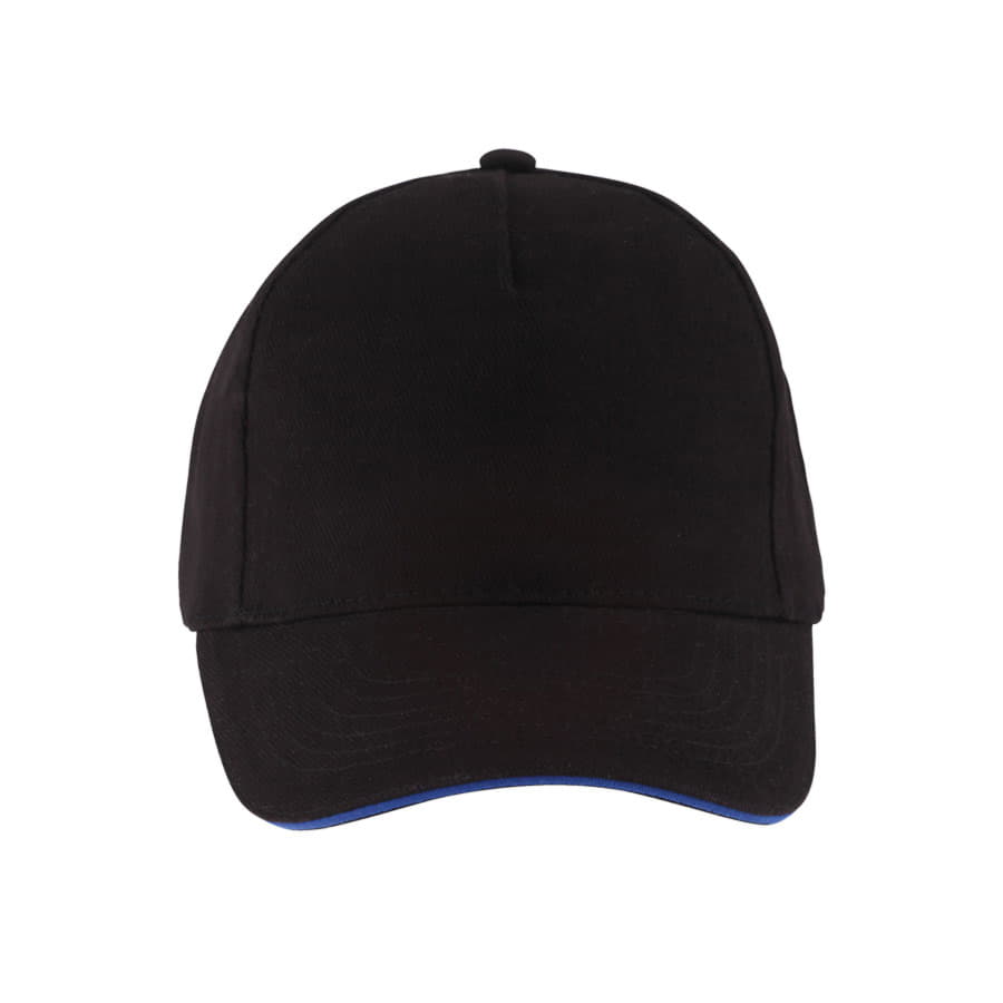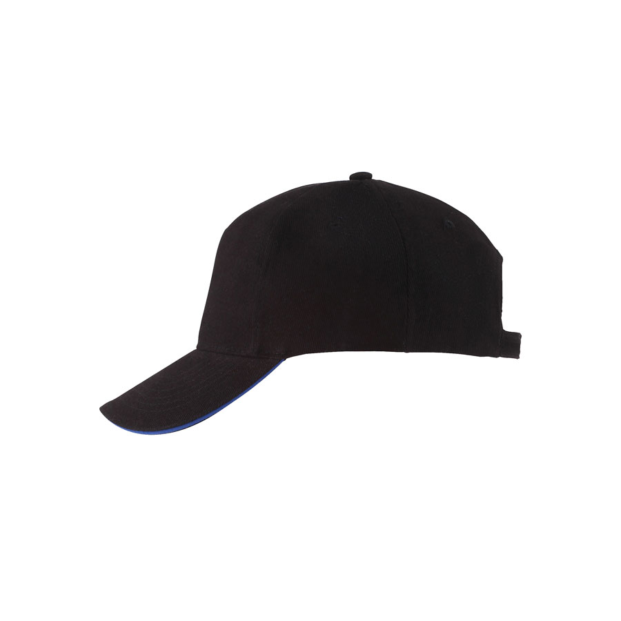 Бейсболка LONG BEACH, 5 клиньев, металлическая застежка, черный, ярко-синий