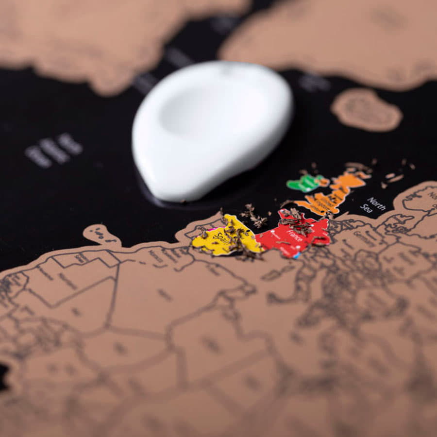 Скретч-карта мира станет прекрасным подарком для всех любителей путешествовать, а также для компаний, чья деятельность простирается далеко за пределы одной страны. Специальное покрытие позволяет легко отмечать страны по мере их посещения: достаточно стереть защитный слой, под которым обнаружится разноцветная карта.